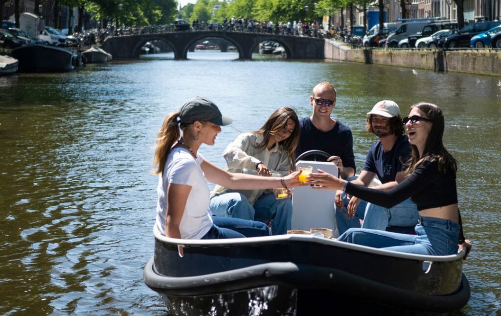 De boten op locatie Nassaukade zijn elektrische sloepen die te besturen zijn door middel van een stuurwiel.