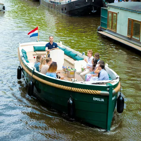 De boot is al te huur voor €50 per uur met een minimale vaarduur van 2 uur. Naast de reguliere prijs voor de boot zijn wij verplicht stadsbelasting in rekening te brengen à €2,60 per persoon. Dit geldt voor alle bootverhuurders in Amsterdam.