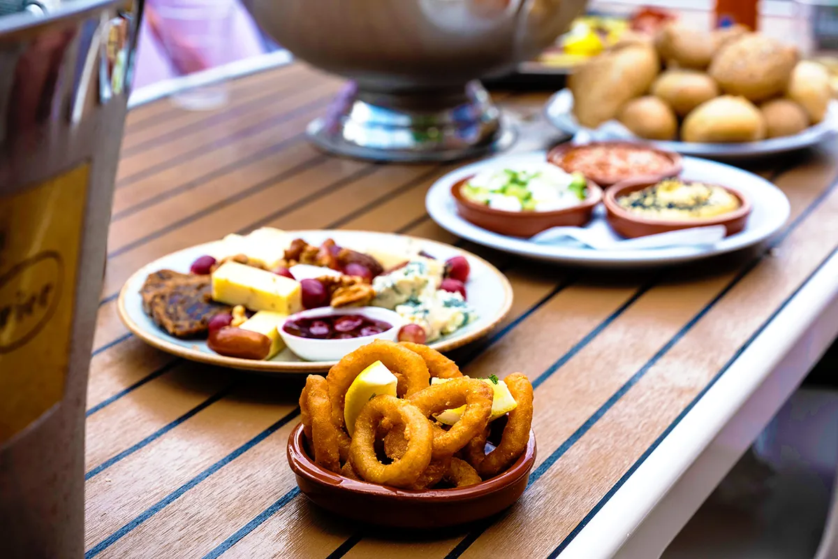 Sushi is a typical example of a meal which you can easily share with friends on a boat. Order your favourite mix of sashimi, maki, nigiri and grilled bites à la carte and enjoy together in your boat. A nice place which is easy to reach from the water is Genki on the Reguliersdwarsstraat.