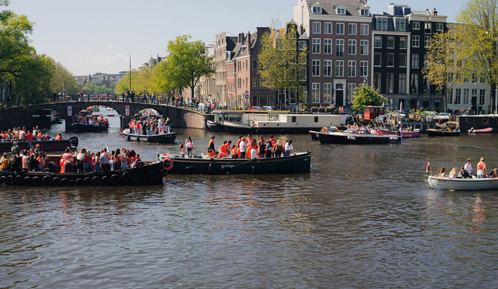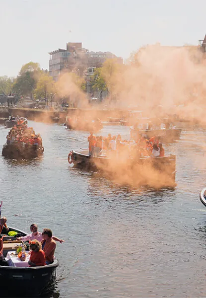 ¡Celebrar el Día del Rey en Ámsterdam siempre es una buena idea! La mejor manera de celebrarlo en Ámsterdam es desde una barca en los canales. Desde el agua tendrás una vista de primera clase de todas las barcas de fiesta, los puestos a orillas del canal y la música en vivo en los puentes. Elige alquilar una barca en Ámsterdam para el Día del Rey 2026 y navega por los canales con amigos y familia. ¡Es algo que debes experimentar al menos una vez y mucho más espectacular que en otros días! Alquila tu barca en Canal Motorboats antes de que todas las barcas para el Día del Rey se alquilen.