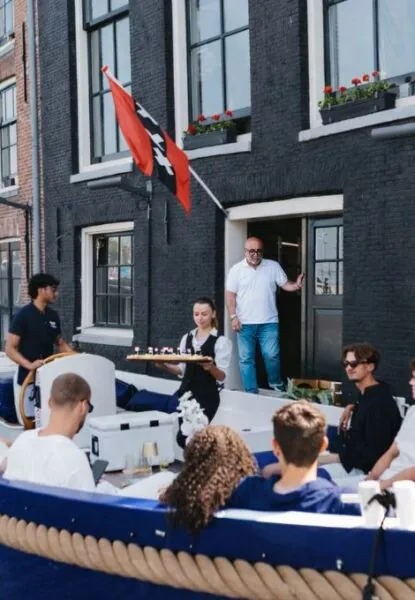Per quanto riguarda cibo e bevande durante il King's Day e il Pride: puoi portare il tuo cibo e le tue bevande sulle piccole imbarcazioni che puoi guidare tu stesso. Sulle grandi imbarcazioni (per 30 persone) è consentito solo il cibo. Le bevande le forniremo noi.